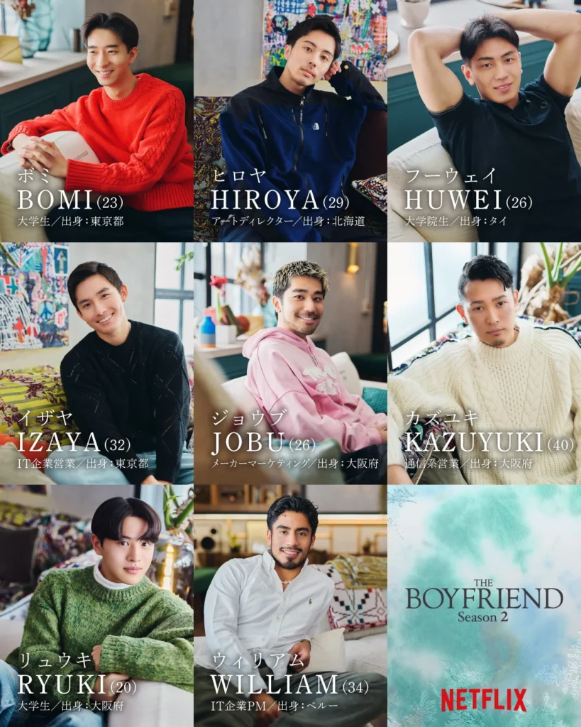 El pasado 4 de diciembre, la plataforma de contenido multimedia confirmó que su programa de citas gay desarrollando en Japón, The Boyfriend, regresará con una segunda temporada el 13 de enero de 2026. La primera temporada de la serie se estrenó a través de Netflix en julio de 2024 e incluyó un elenco de ocho hombres japoneses y del este de asiático.